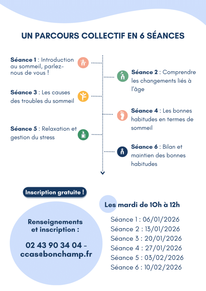 Le CCAS de Bonchamp vous propose un Atelier collectif sur le SOMMEIL, un parcours de 6 séances gratuites