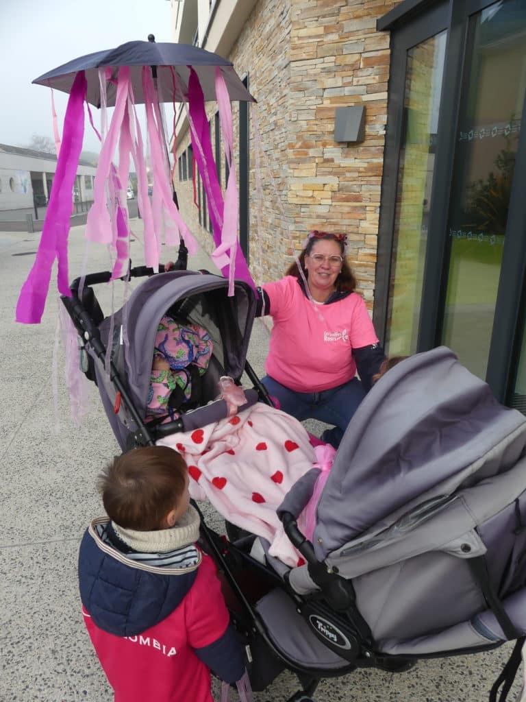 A l’initiative de Vanessa, assistante maternelle et l’accompagnement de Lucie Garnache, Responsable du Relais Petite Enfance (RPE) ; 12 assistant(e)s maternel(le)s et 40 tout-petits se sont donné(e)s rendez-vous ce matin à 9h30 devant la Maison de la Petite Enfance pour participer ensemble à une balade vers Galbé dans le cadre de l’opération Octobre Rose et des marches solidaires qui sont organisées.