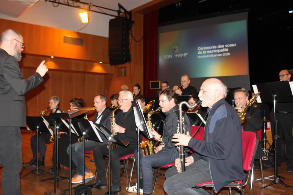 Après l’accueil en musique du Big Band, orchestre du Conservatoire de Laval Agglo Pôle Bonchamp dirigé par Antoine Orblin, la rétrospective 2025 et les temps forts de l’année, le Maire a adressé ses vœux au public, annoncé les programmes de travaux en cours aux habitants, nouveaux arrivants, officiels et partenaires :