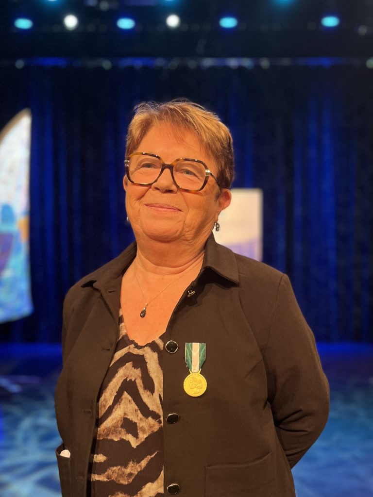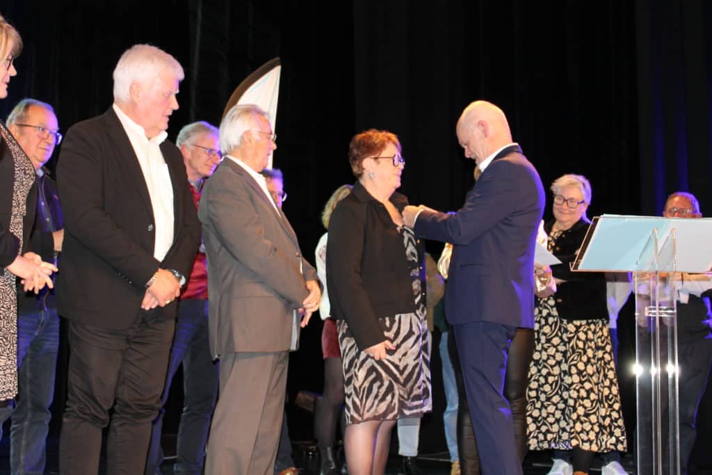 En fin de cérémonie, le Maire, élus et anciens élus, ont remis à Josiane Cormier, 1ère adjointe aux affaires sociales, petite enfance, enfance et jeunesse, la médaille de vermeil
