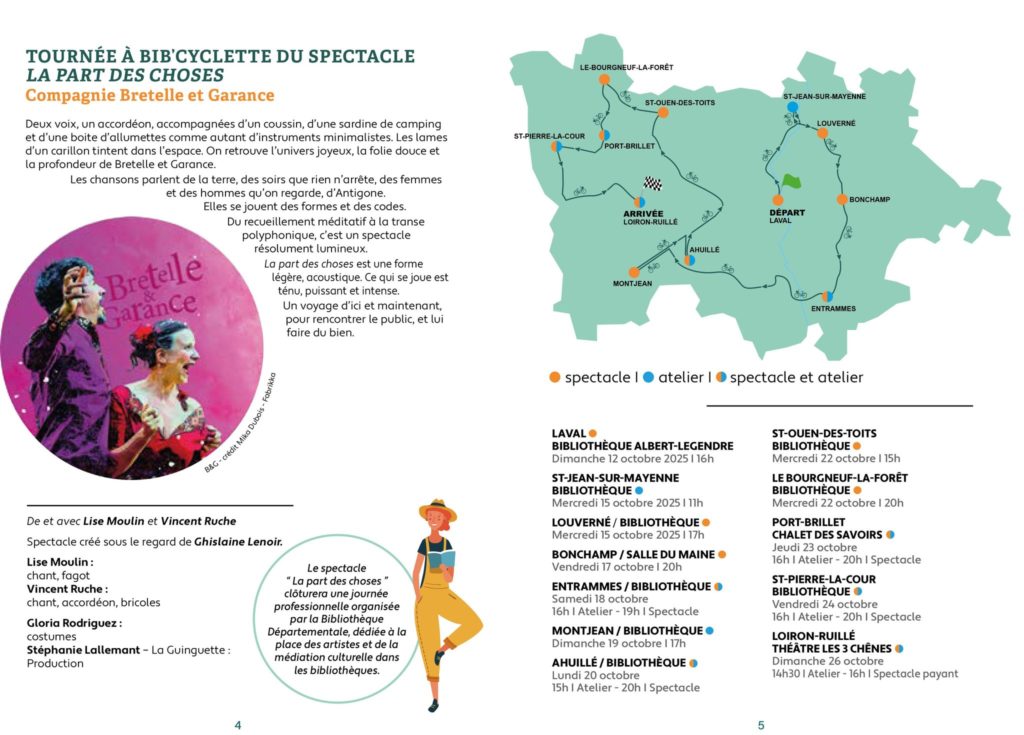 Sur cette tournée musicale commencée le 12 octobre à Laval, soutenus par le réseau des Bib de Laval Agglomération dans le cadre de l’Automne des médiathèques et du temps fort à l’écologie ; ils jouent leur spectacle et animent des ateliers de jeux vocaux dans 11 bibliothèques de l’Agglo et termineront leur tournée le 26 octobre au théâtre des 3 Chênes à Loiron/Ruillé par un spectacle tout en surprises accompagnés par 5 musiciens et des p’tits cœurs.