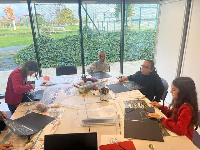 A l’Espace Jeunes : Activités Manuelles sur le thème « Famille Adams » (Fabrication d’un memory, Broderie, Création d’une affiche…), Déplacement au Trampoline Park au Mans