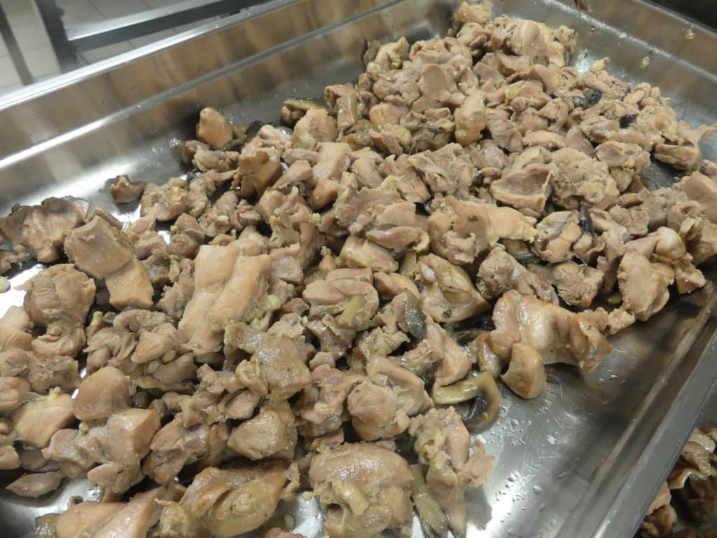 Plat : ÉMINCÉ DE CHAPON A LA FORESTIÈRE pour 10 personnes