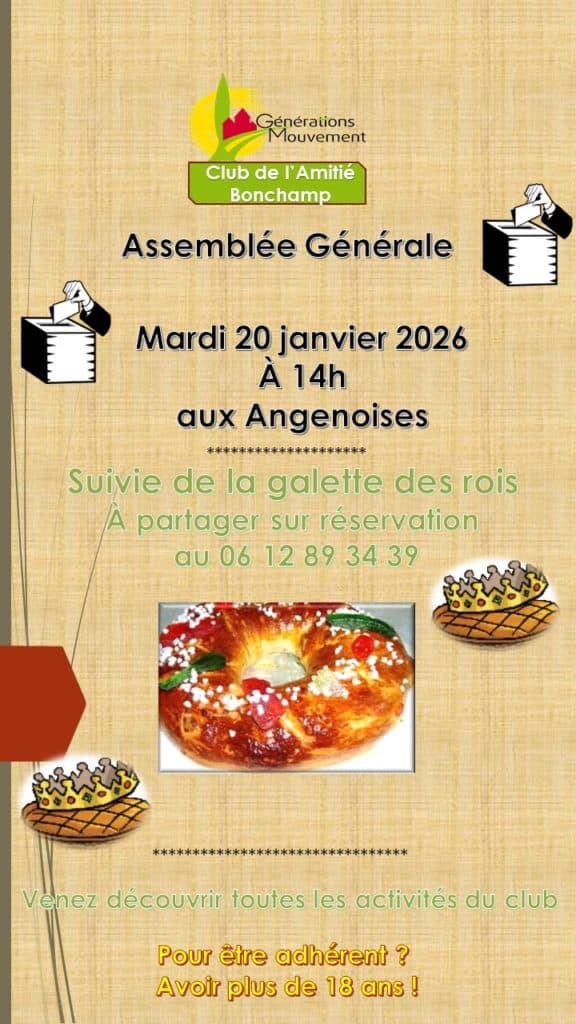 Générations Mouvement : Assemblée générale suivie de la galette des rois Mairie de Bonchamp-lès-Laval / Générations Mouvement : Assemblée générale suivie de la galette des rois