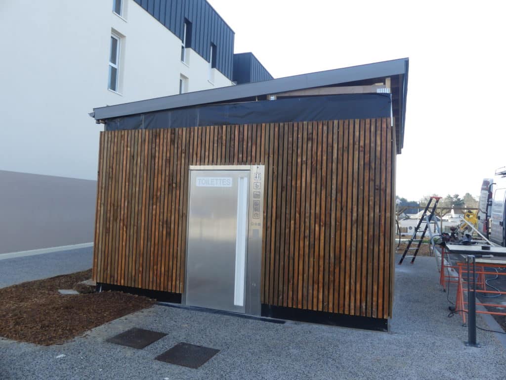 👷🚾 L’entreprise Courcelle finalise l’habillage extérieur en bardage bois du bloc sanitaires