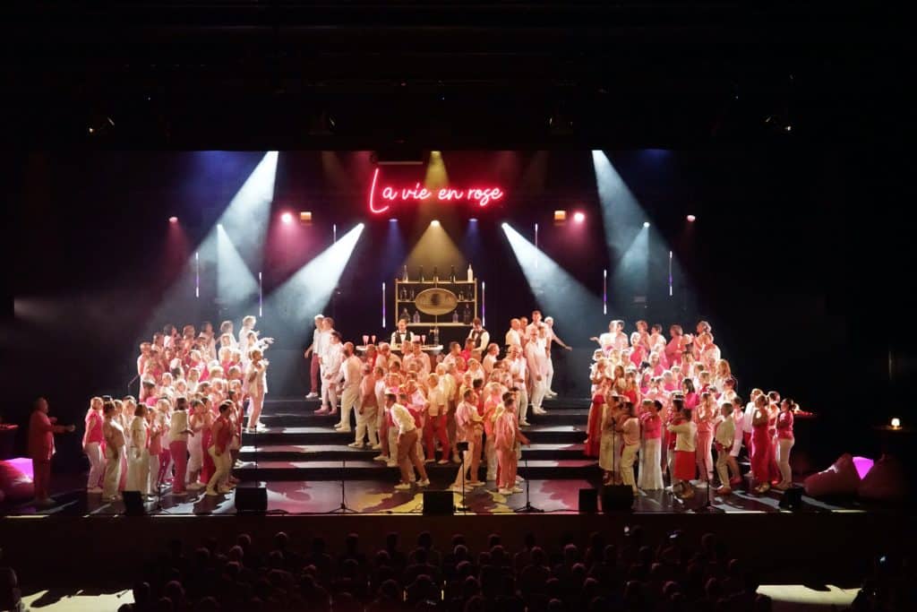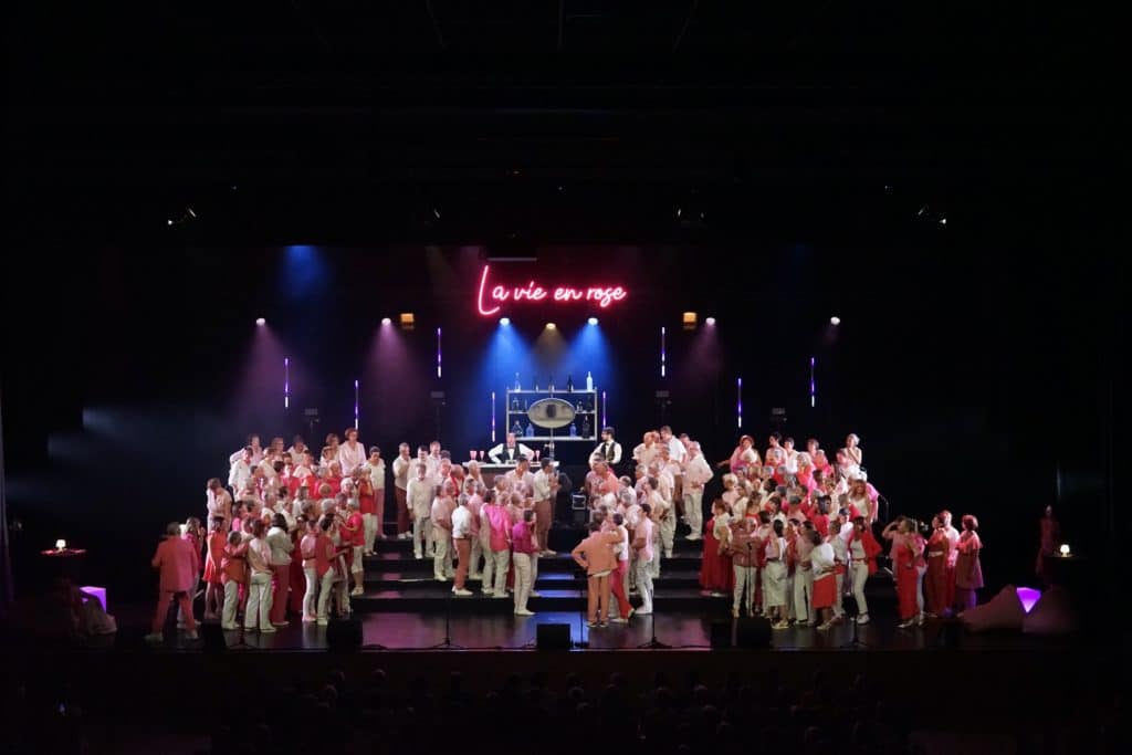 Après le spectacle « Allo le monde » applaudi par plus de 6000 spectateurs, les 160 choristes de « Coup d’Chœur » présentent leur nouvelle création « LA VIE EN ROSE » où se mêlent romantisme, optimisme et dynamisme.