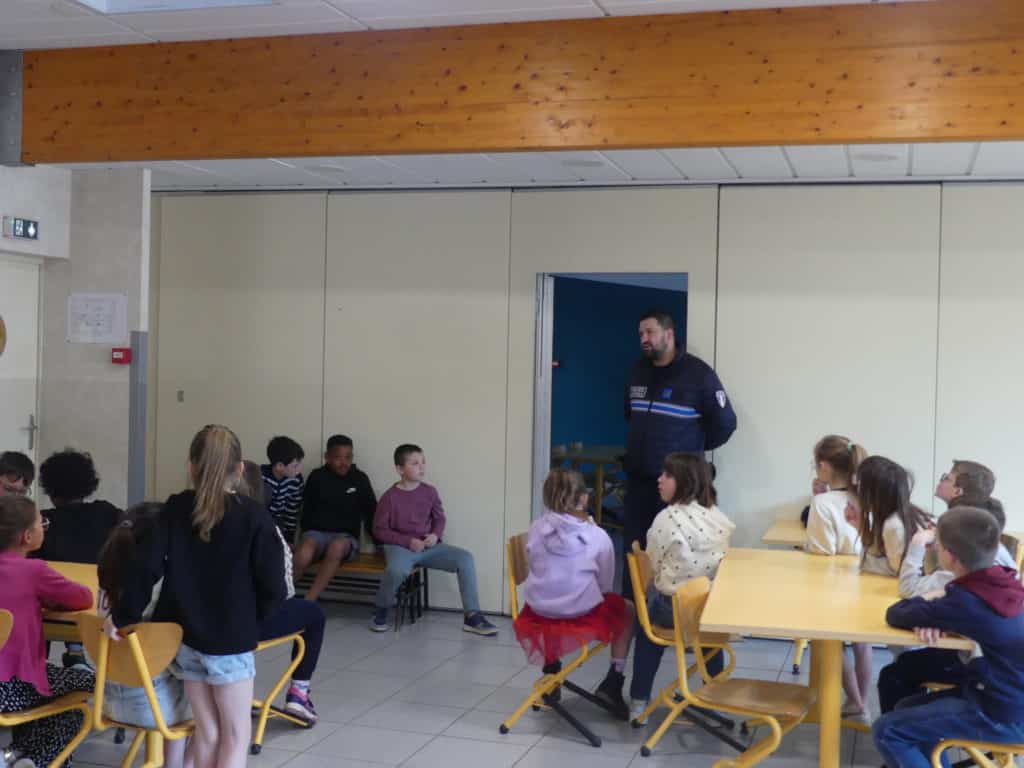 « L’équipe de l’accueil de Loisirs Graines de Malice m’a sollicité pour une intervention sur la sécurité routière » explique Florian Chamaret, policier municipal et ajoute « après m’être présenté, leur expliquer mes missions, où se trouve mon bureau pour des échanges éventuels, nous sommes partis sur le parcours en centre ville qu’ils empruntent régulièrement pour un rappel des règles de prévention de sécurité routière ».