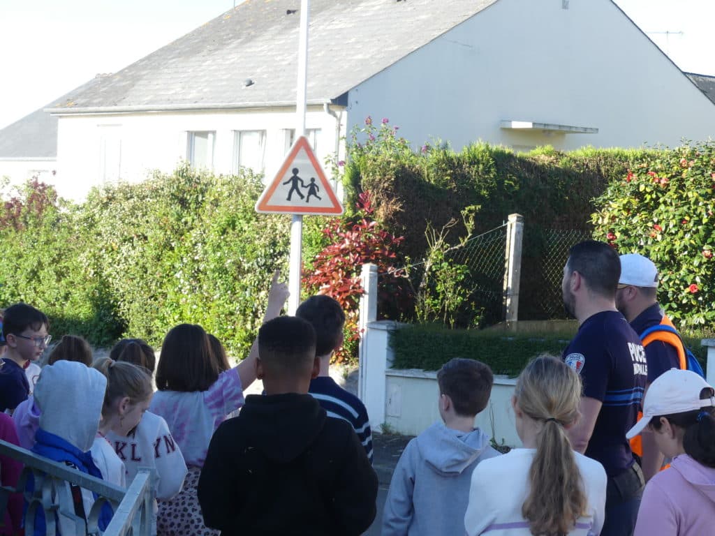 L’objectif est d’expliquer les panneaux de signalisation dans le centre-ville, de rappeler qu’il faut traverser aux passages piétons et d’expliquer les règles de la zone de rencontres.
