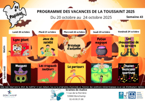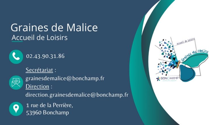 - L’accueil de loisirs « Graines de Malice » est destiné aux enfants de Bonchamp dès lors qu’ils sont scolarisés. Il s’organise tout au long de l’année du lundi au vendredi.