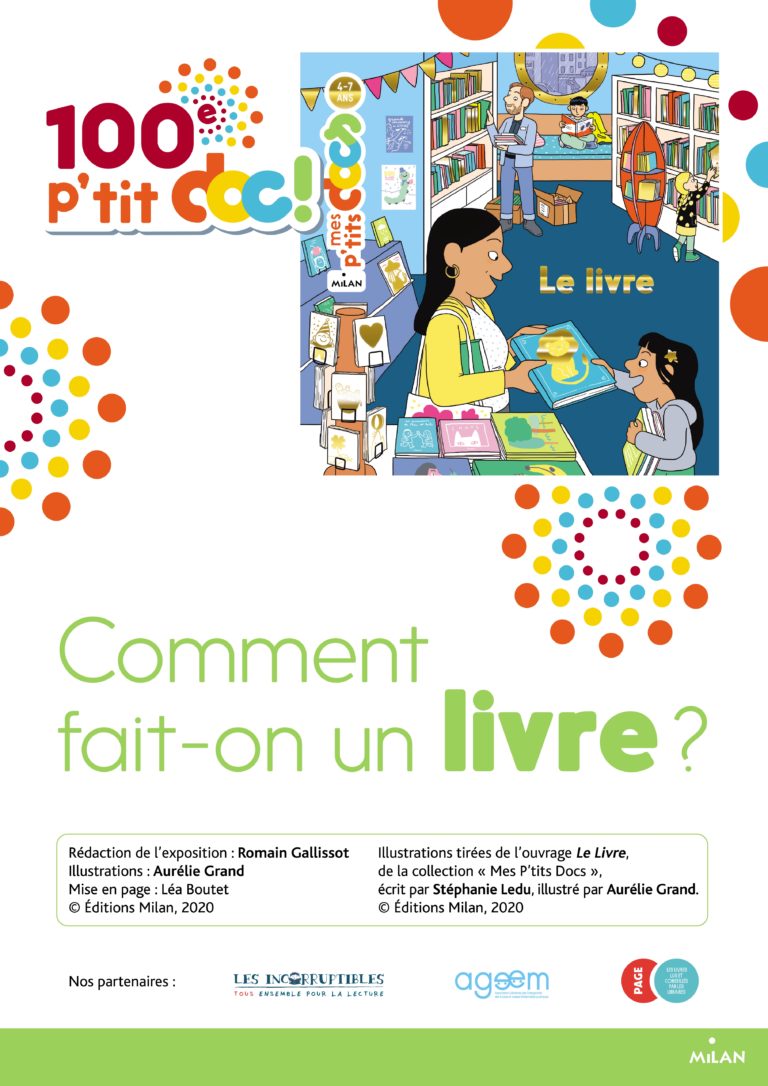 Qu’est-ce qu’un livre ? Qui l’écrit et qui l’illustre ? Comment arrive-t-il dans les mains du lecteur ? À l’occasion de la parution du 100ème titre de la collection « Mes p’tits docs », les éditions Milan ont conçu cette exposition pour expliquer aux enfants toutes les étapes de la création et de la fabrication de cet objet magique qu’est le livre.