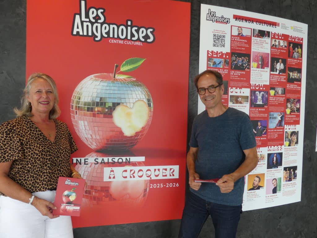 Fabienne Le Ridou, Adjointe à la culture et Jean-Pierre Teulade, Responsable des Angenoises, présentent la nouvelle saison 2025-2026